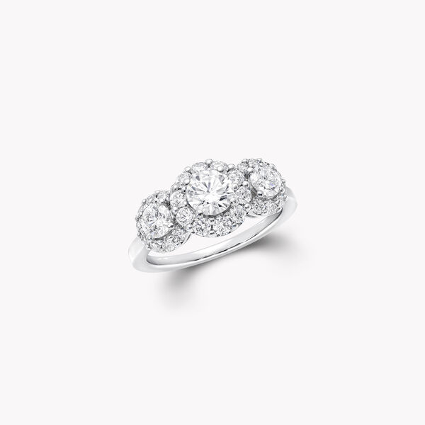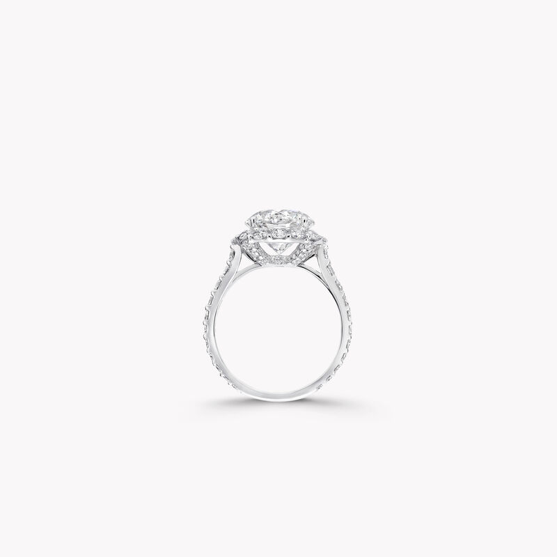每颗格拉夫美钻均由大师级工匠仔细镶嵌,提供不同重量可供选择。每一枚戒指镶嵌的钻石大小、重量和品质会略有所差异。主钻为 0.5 克拉及以上的钻戒下方金属戒托采用全密镶设计。