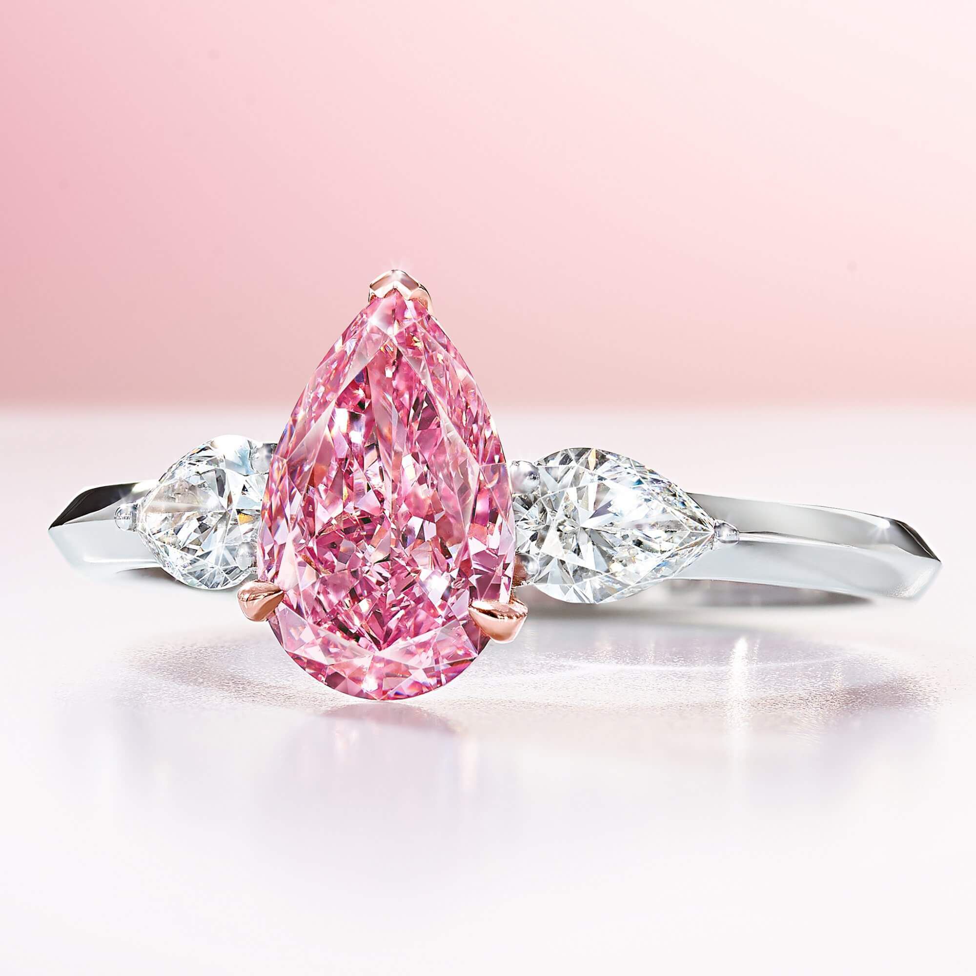艳彩粉红钻是珍罕粉红钻中的臻品。这颗1克拉梨形艳彩粉红钻呈现令人惊叹的浓艳色泽,浪漫动人。